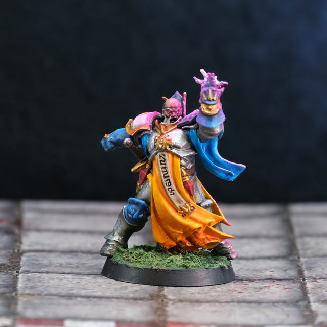 After Averon Stormsire, this was either the second or third model I kitbashed and one where I did a little more than just chop hammers away from hands. And hey look, I’ve contradicted my claim not to know an open left hand as I used one here! Now that I’ve remembered, I think this is from one of the Imperial Nobility models.