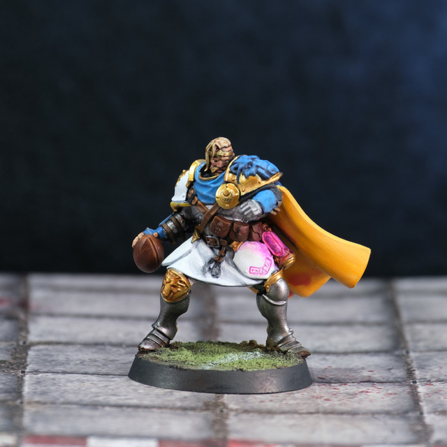 As a big fan of the simple 3rd edition Blood Bowl human thrower in my first go-round with Games Workshop in the nineties, getting a similar pose for this Stormcast team was a nice bonus. Another one made more attainable via the partworks magazines, the Knight Judicator with gryph hounds had most of the pose already done for me: one planted foot, another stretched forward as he leans back to launch an arrow. Well, swap out that massive bow for a football and we’re largely there.