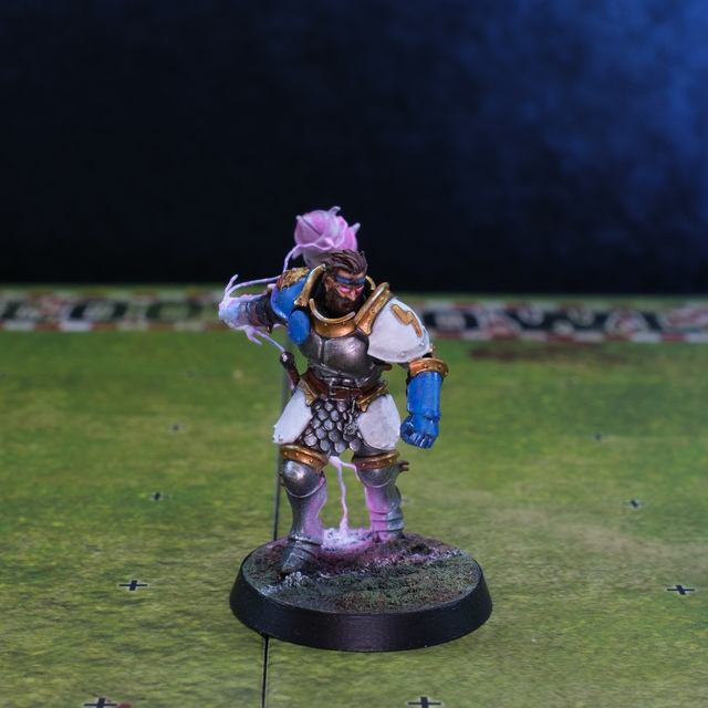 So at last, I’ve got to a point where I’m reasonably happy with this miniature for my current level of skill. Encouraged, I’ve also quickly made progress on a converted Knight Incantor for the team and have been trying a bit of a magic effect which I’ll share separately.